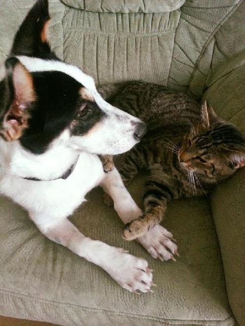 Čert a Kačenka v novém domově v Hlinsku u Emilie a jejího tatínka. Nově se jmenují Bertík a Bellinka, dvě třínohá, odrostlá štěňátka. Bellinka má problémovou i druhou nožku, a proto naše organizace přislíbila úhradu veterinární péče na doléčení nožičky.