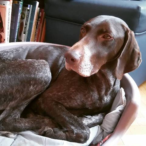 Další fenka NKO dostala v nové domově u paní Soni jméno Gina. Ustrašená a hubená se pomalu zotavuje ze života u předchozího majitele. V novém domově má i kamarádku MOK.